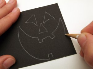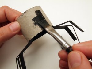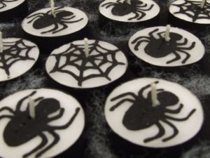 Nyomtassuk ki a pók és a pókháló sablonjait, majd a kör széle mentén vágjuk ki őket. A mécsest vegyük ki a fém tartójából, és a sablonokat helyezzük a teamécsesek tetejére. Felülről rajzoljuk át a mintákat, így a gyertyára karcolódik a minta. A karcolásnál keletkezett viaszdarabokat egy puha ecsettel távolítsuk el a mécses tetejéről. Fekete gyertyafestő filctollal rajzoljuk át a karcolásokat, a pók belsejét pedig töltsük fel a festékkel. A teamécses fém tartóját kívülről fessük be fekete, fémre is használható festékkel. A megszáradt mécsest helyezzük vissza a fém tartójába.