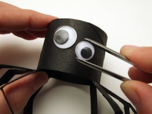 Nyomtassuk ki a szemek sablonjait. A szemek belső részét fekete kontúrfestékkel, a külső részét pedig fehér kontúrfestékkel rajzoljuk meg. A kontúr száradása után a belső részt fekete festékkel, a külső részt fehér festékkel töltsük fel. A festéket hagyjuk megszáradni, majd száradás után elszórtan helyezzük az ablaküvegre.