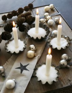2. Az átszúrt golyókat fehér zsinórra fűzzük fel, a zsinór végeit kössük össze, hogy egy koszorúformát kapjunk. A felesleges zsinórt vágjuk le. Az akasztóhoz vágjunk le a zsinórból egy kb. 25 cm hosszú darabot, hajtsuk félbe, a végére kössünk csomót. Az akasztót fűzzük át két hóember feje között lévő zsinóron.
