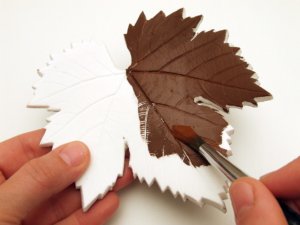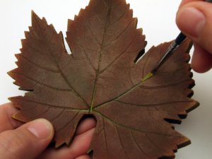 3. A spatulák felső részére vízszintesen húzzunk egy ferde vonalat. Az alsó rész fessük testszínűre, a felső részt pedig zöldre. Egy spatulát szintén fessünk zöld színűre.