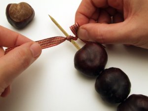 8. A madárijesztő hátoldalára ragasszuk fel a maradék spatulát, és kössük rá a zöld vászonszalagot.
