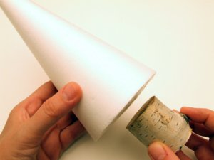 5. A lyukakba tegyük bele a faágat, és egy kis szárat hagyva neki, a felesleget vágjuk le.