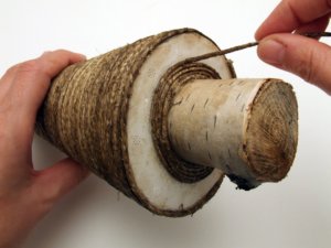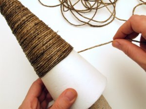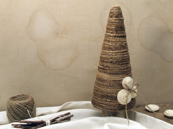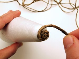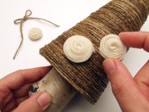 6. A faág köré kössünk 25 cm hosszú sodort papírszalagot és kössük masnira.